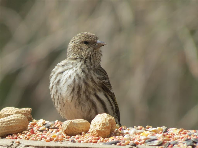 Your feeders are busy places. Maybe the Pine Siskin is a little spoiled and wants to see if he can find someone else to baby him. The Carolina Wren is so cute.