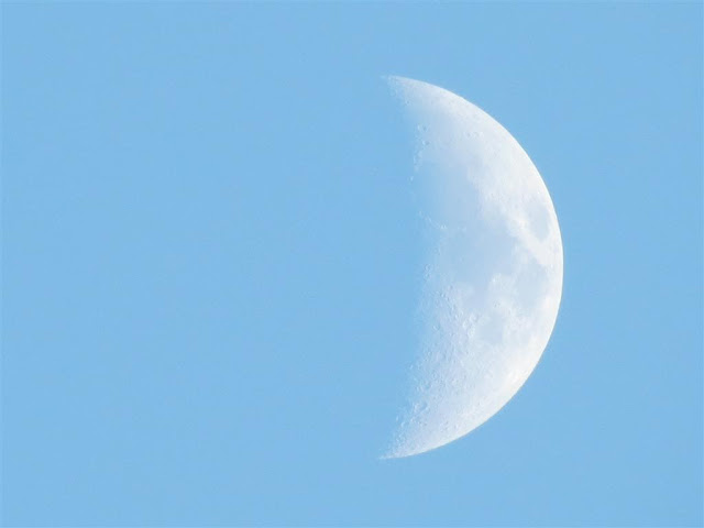 Oh the moon - yesterday on the way home I saw the half moon in the sky and was going to take pictures of it - and completely forgot - drat. Well I'll try again tonight, but it will have changed a bit more - I need pictures of the half moon.