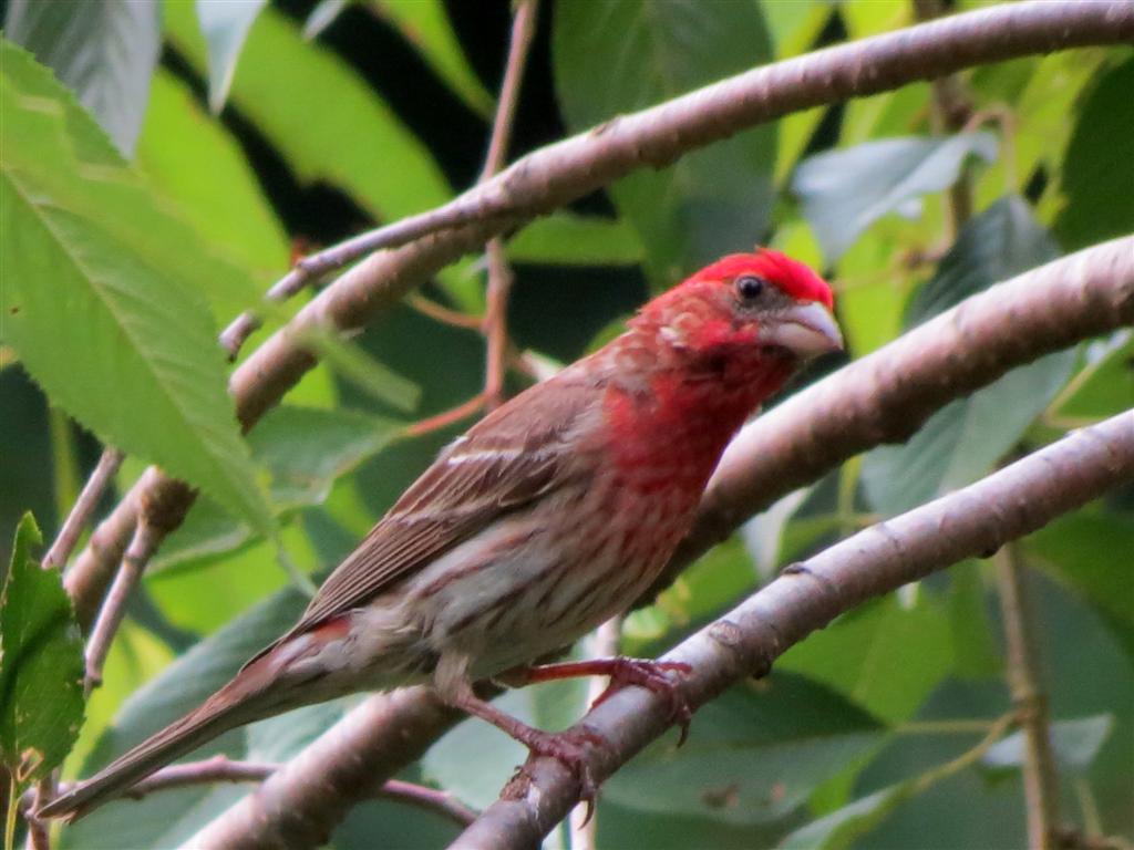 A male House Finch, looking pretty with his colorful red head.