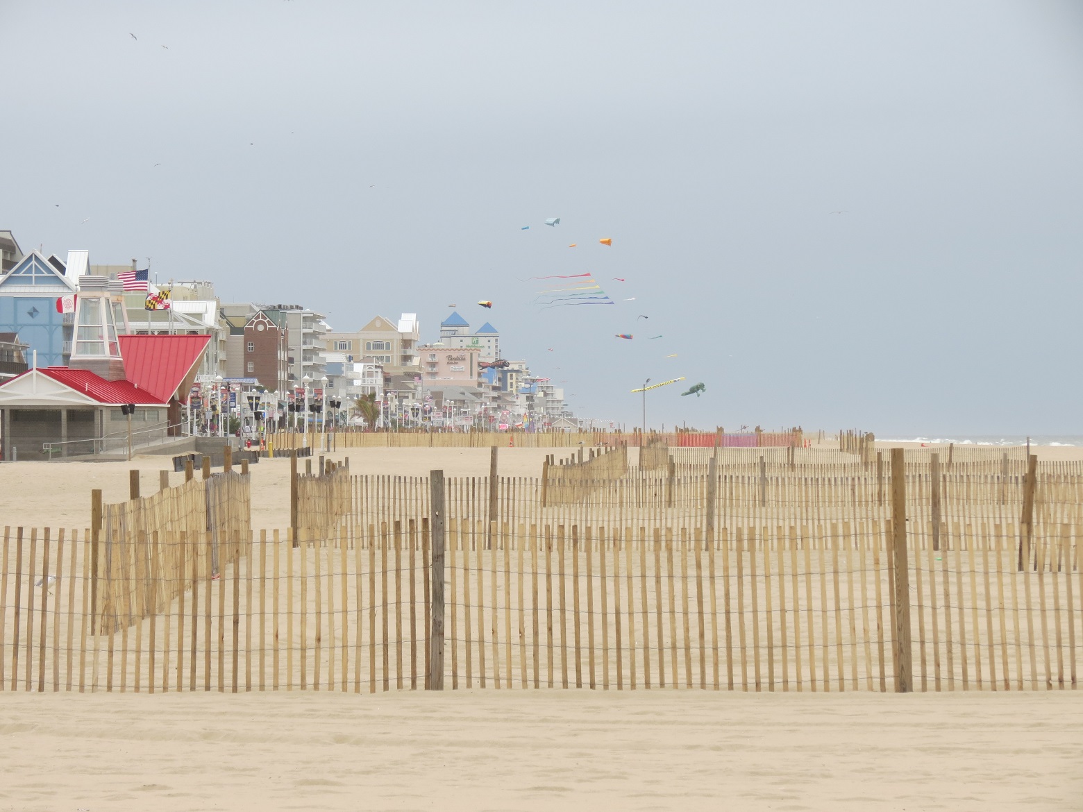 Another view of the fence, beach, kites, Great Black Backed Gulls and a gray sky..We had a fun time on our little getaway trip.. I love the beach.. I hope you enjoyed my post and photos.