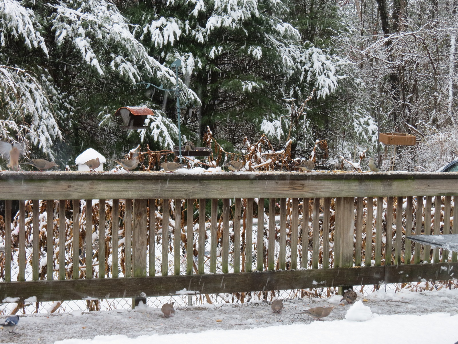 Hi Eileen, So nice you had a great Thanksgiving with your family. Your birds are being well-taken care of. So nice you give them extra seed when it gets snowy cold. Have a fantastic coming week!