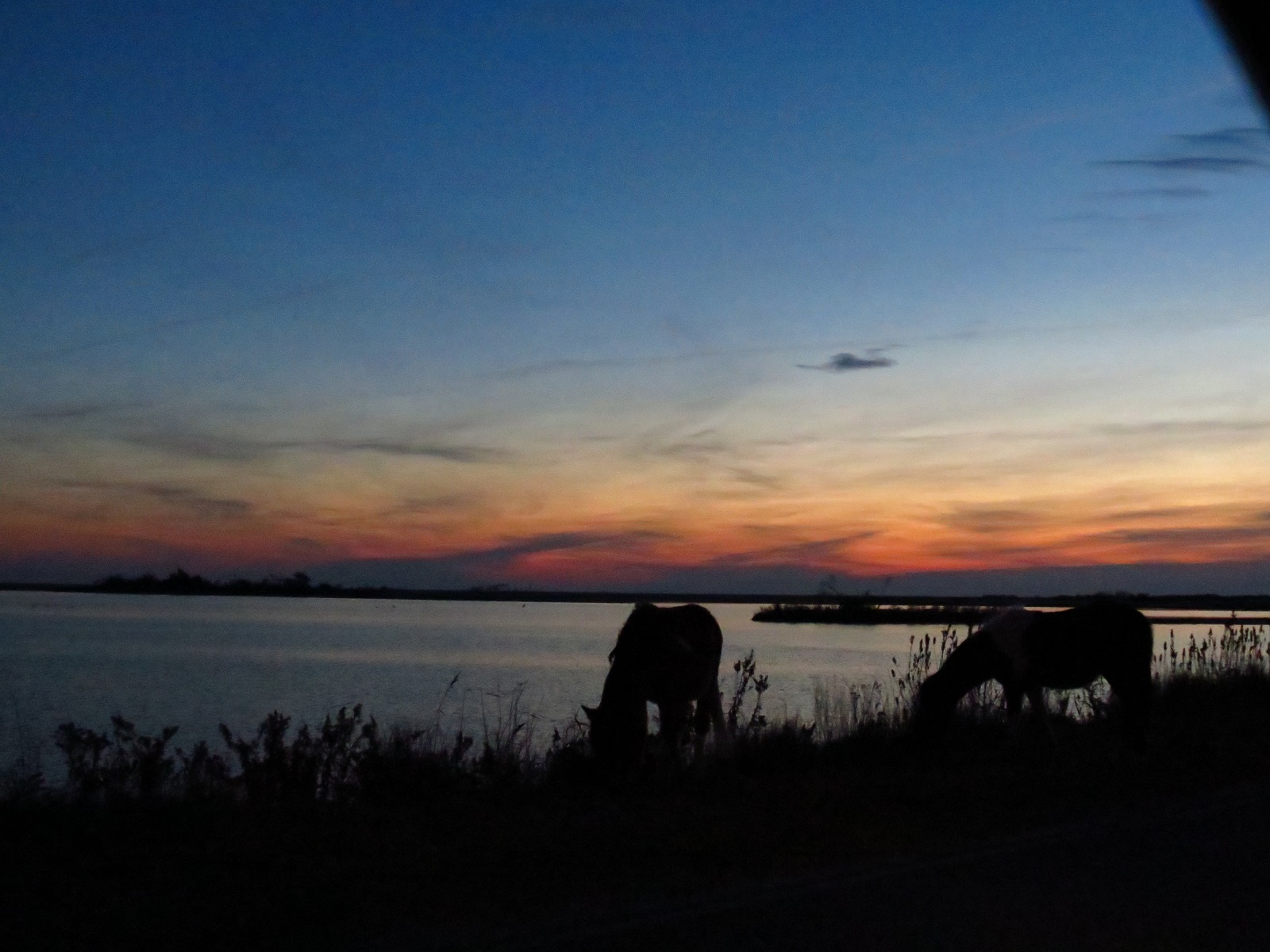 The hotel is just outside the entrance of the park, we were up early to enjoy the sunrise too. The Chincoteague ponies were standing along side the road as we drove to the parking lot at the beach..