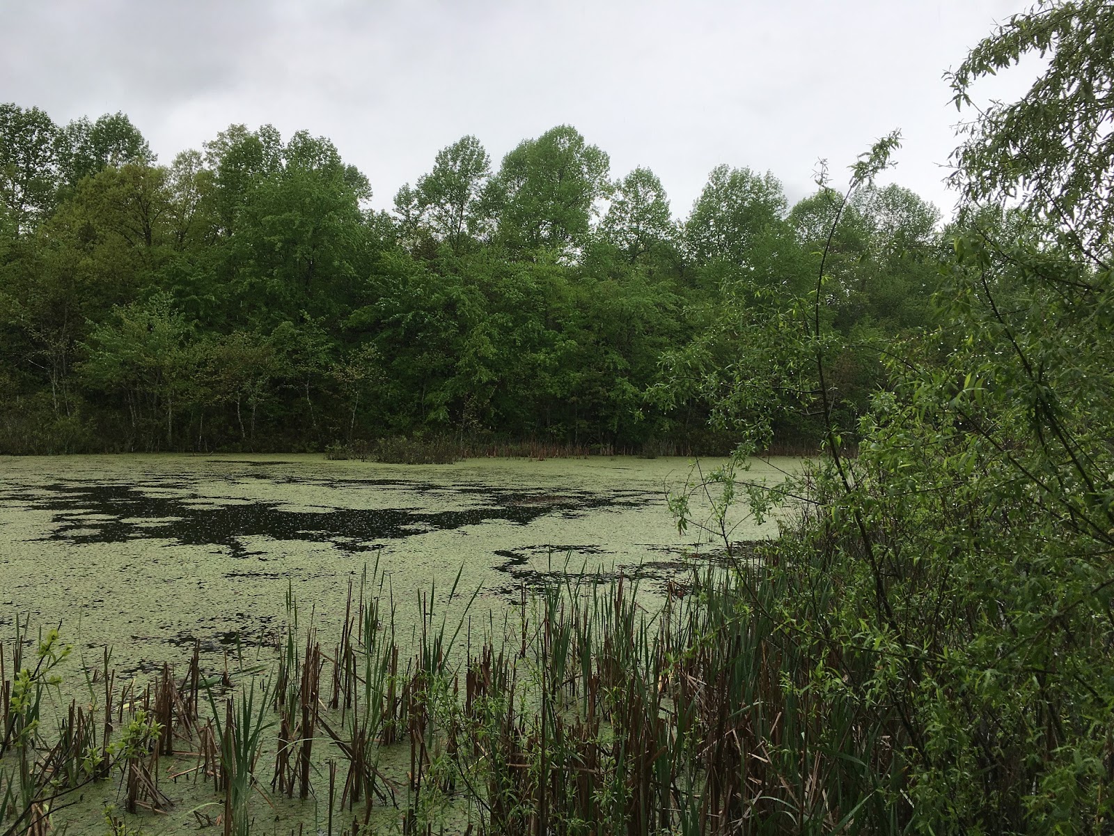 Outside the cave at the Sloan's Crossing Pond, we took a short loop walk around this pond in the park. I did see a couple of Wood Ducks with ducklings. They hid quickly in the reeds.