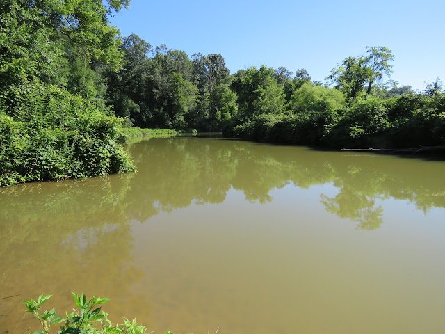 A view of the creek looking a little muddy from recent rain. We saw a Great Blue Heron but it was too shy to pose for a photo.