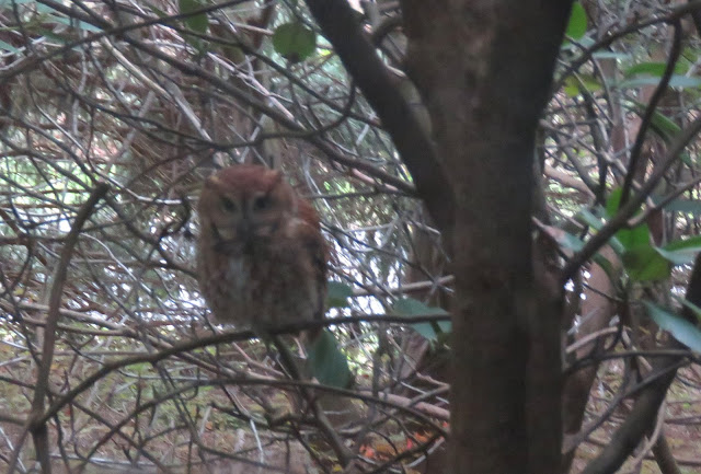 What a wonderful thing to have the Screech Owl so close. Once you locate them they do seem to occupy the same perch, so are often easy to refind. But to have one so close is a treat to be sure.