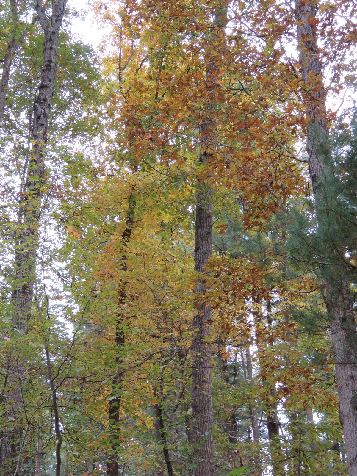 One of our recent walks on the fire road, this walk is almost a mile and a half from home. We saw some fall colors and a Northern Flicker and a distant hawk.