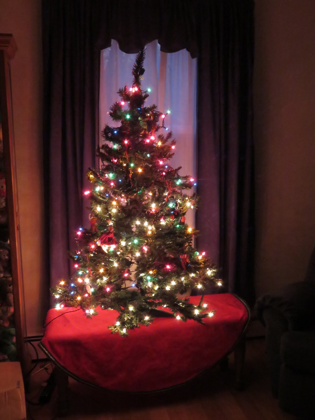 The tree with just the lights. Now, I have the whole month to enjoy the tree. It will come down right after New Year's Day.