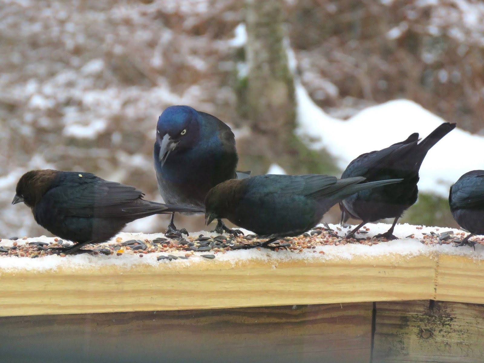 These are some of my yard bird visitors from Feb 24th up to March 6th. For a couple of days my yard was filled with Grackles, Red-winged Blackbirds and Brown-headed Cowbirds.