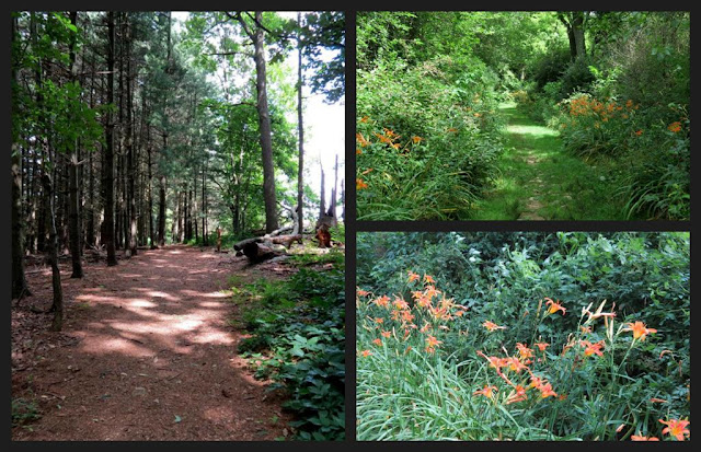 On the morning of July 4, hubby and I went on a hike at a local park called Hashawha Nature Center. We try to take our walks early in the morning to avoid the hot & humid afternoon. We took the longer loop trail which goes by several ponds, an old homestead, pine forest, trail lined with daylilies and the Raptor Center.