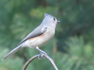 I enjoy watching and feeding my backyard birds. The Tufted Titmouse is one of my year round backyard birds. The are a small songbird, they have a white face and a grey crest and a short stout bill.