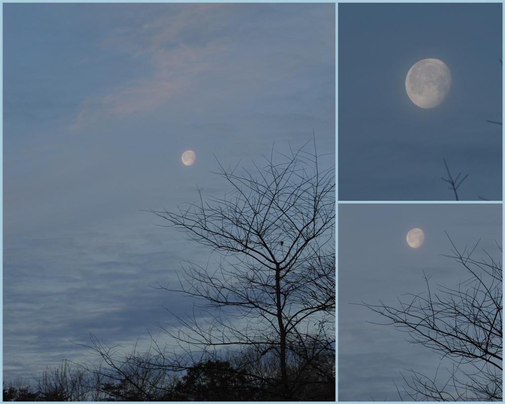 These are a few shots from yesterday in my yard.   I have been keeping my camera on the tripod at the dining room window. It is easy to snap pic's one handed using the tripod. I'll be happier when my hand is out of this cast. Typing one handed is not fun.  Early in the morning I was able to watch the moon setting. Afterwards I enjoyed watching my yardbirds. These are a few of my favorite things that make me happy. Skywatching and birding...both can be addicting and fun.