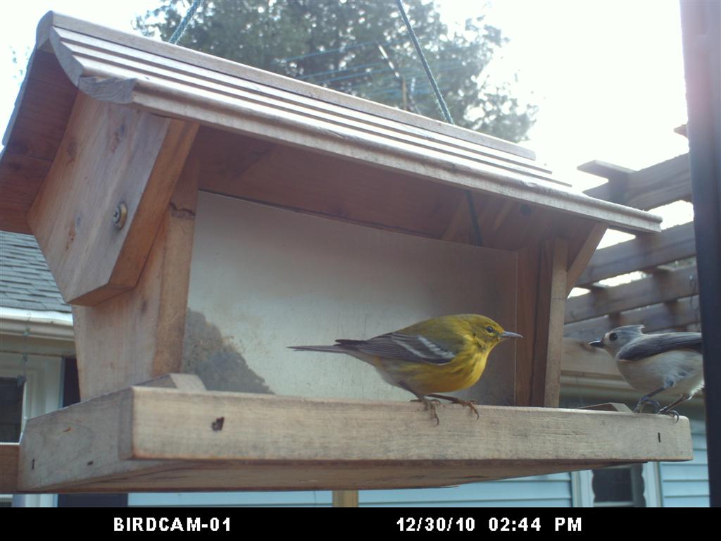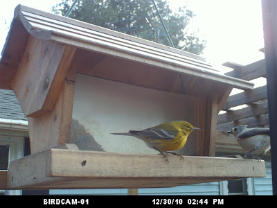 The birds seen below on my birdcam are the RB Nuthatch, WB Nuthatch, Pine Siskins, Goldies and Pine Warbler, Cardinal, Chickadees, Titmouse and the squirrel who wanted a closeup shot for his portfolio.