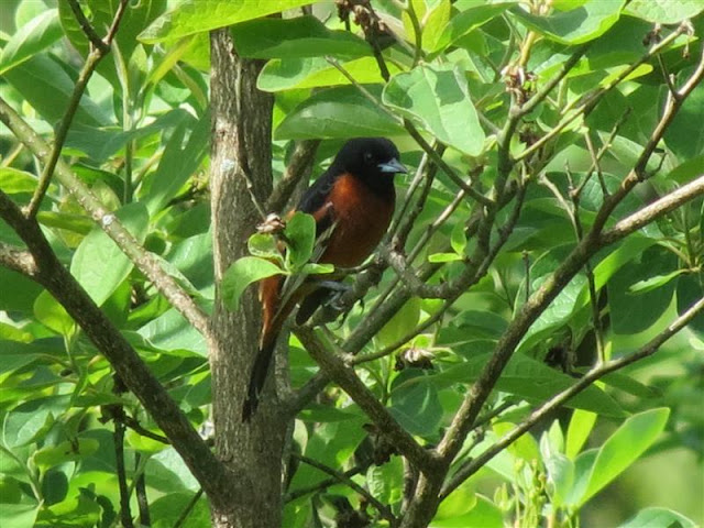 I saw these birds during an outing at the local Hashawha Nature Center. I knew from previous summers that the Baltimore Orioles were nesting in the trees at the nature center but this was the first time I saw the Orchard Orioles.