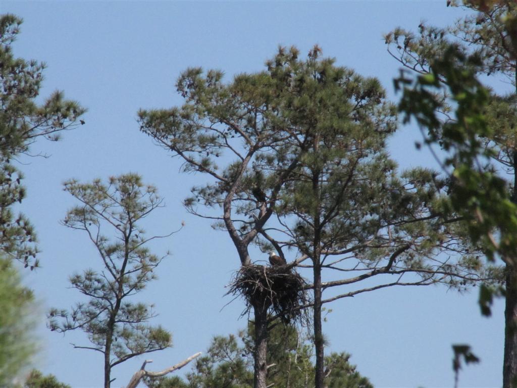 A far away view of the Eagle parents. I had heard from volunteers at the visitor center that  there were two eaglets in the nest.