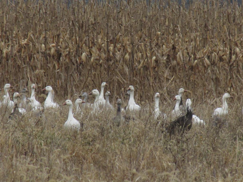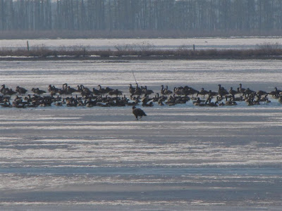 Sorry, I could not zoom closer but in front of the geese is a juvenile Bald Eagle