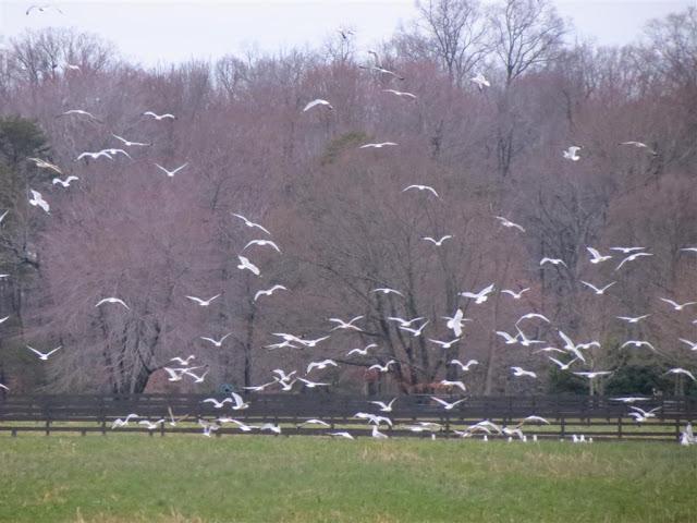 So, we decided to drive on further to the Blackwater NWR it was there we saw a lot of birds....highest count being Snow Geese and Canada Geese and a lot of Tundra Swans. We also saw some Yellow Rump Warblers, Mallard ducks, Coots, Northern Shovelers, Bald Eagles, Vultures and Great Blue Herons.