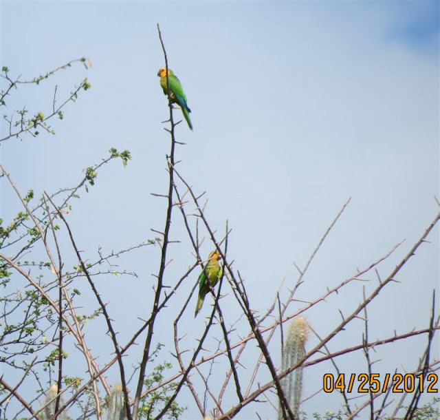 So a list the birds we saw at Jaanchies were: lots of Troupials, lots of Trupical Kacho, Bare-eyed pigeons and many more Bananaquits. Outside of the restaurant were chickens and we saw some more green parakeets.