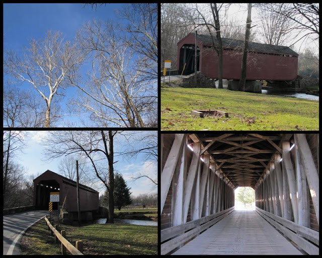 The Covered Bridge in this mosaic is named Loys Station Bridge. This bridge is listed on the National Parks National register of historic places. Each bridge had a different truss system, which I tried to show in one of the photos.