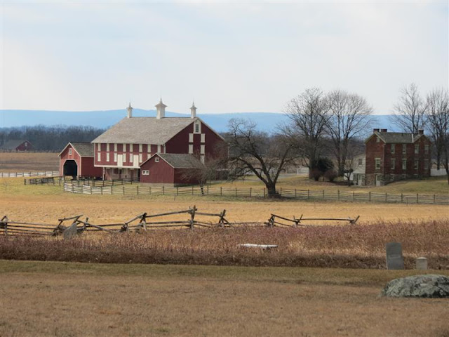 From the Gettysburg tour road, fences are all over, I love the red barn and the big evergreen tree.