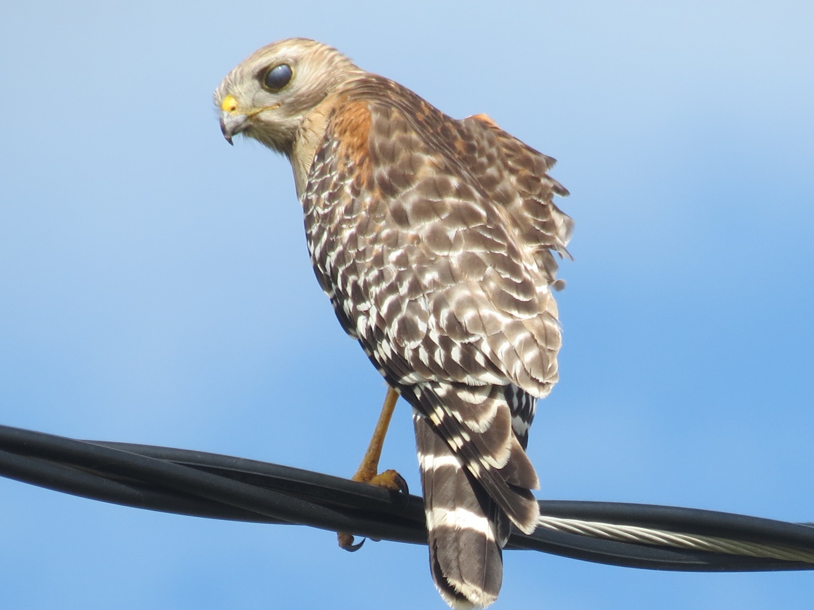 A Magnificent Frigatebird. Sorry, it is not the best photo but so far it was the only Frigatebird I have seen.