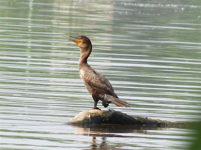 Double-crested Cormorants perched on a rock in the Potomac River.
