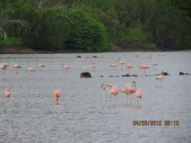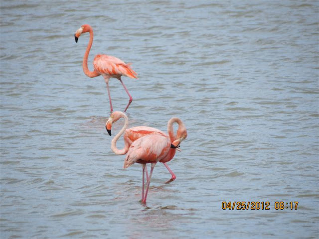 The Curacao Pink Flamingos were found at a saltwater lake or what is called the saltpans. I believe the Caribbean Flamingos can also be found on the southern tip of Florida. Some neat facts about the flamingo. They stand on one leg to conserve body heat. They can travel 300 hundred miles in a day to a new feeding site.