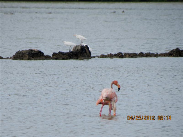 Above are a few of the Caribbean Pink Flamingos and a few Egrets in the background.