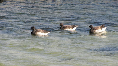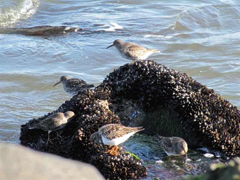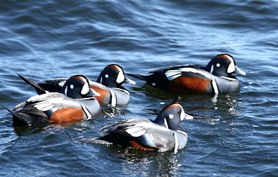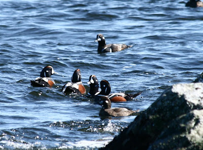 Another distant shot of the lighthouse, a few male Harlequin Ducks and bottom right are some Common Eider..