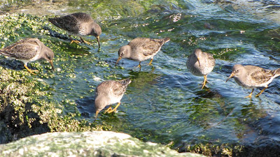 Another shot looking back at the lighthouse and a few Savannah Sparrows..also known as Ipswich Sparrow.. a lighter colored Savannah which is seen on the coast..The fences along the jetty wall are there to protect peeps from falling on the rocks and into the water..