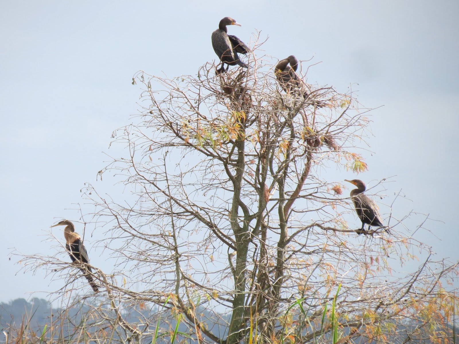 There is at least one Anhinga on this tree with a few Cormorants. Can you find the Anhinga?  The bill is different on the Anhinga, sharper and thin.