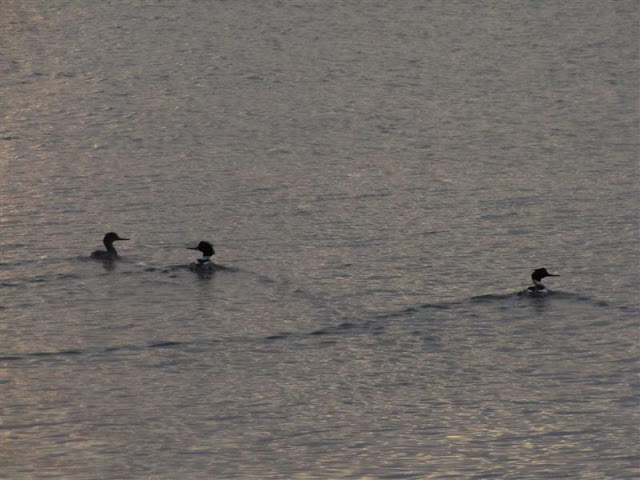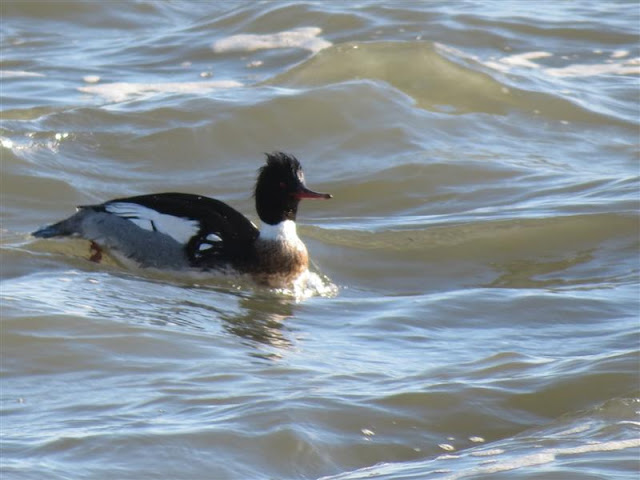 While checking out the Eagle nest, I noticed a duck far away floating in the lake just under the nest, it turned out to be a Red-breasted Merganser. This bird is rare to be seen in Maryland this time of the year. Are the winter birds already on the move?