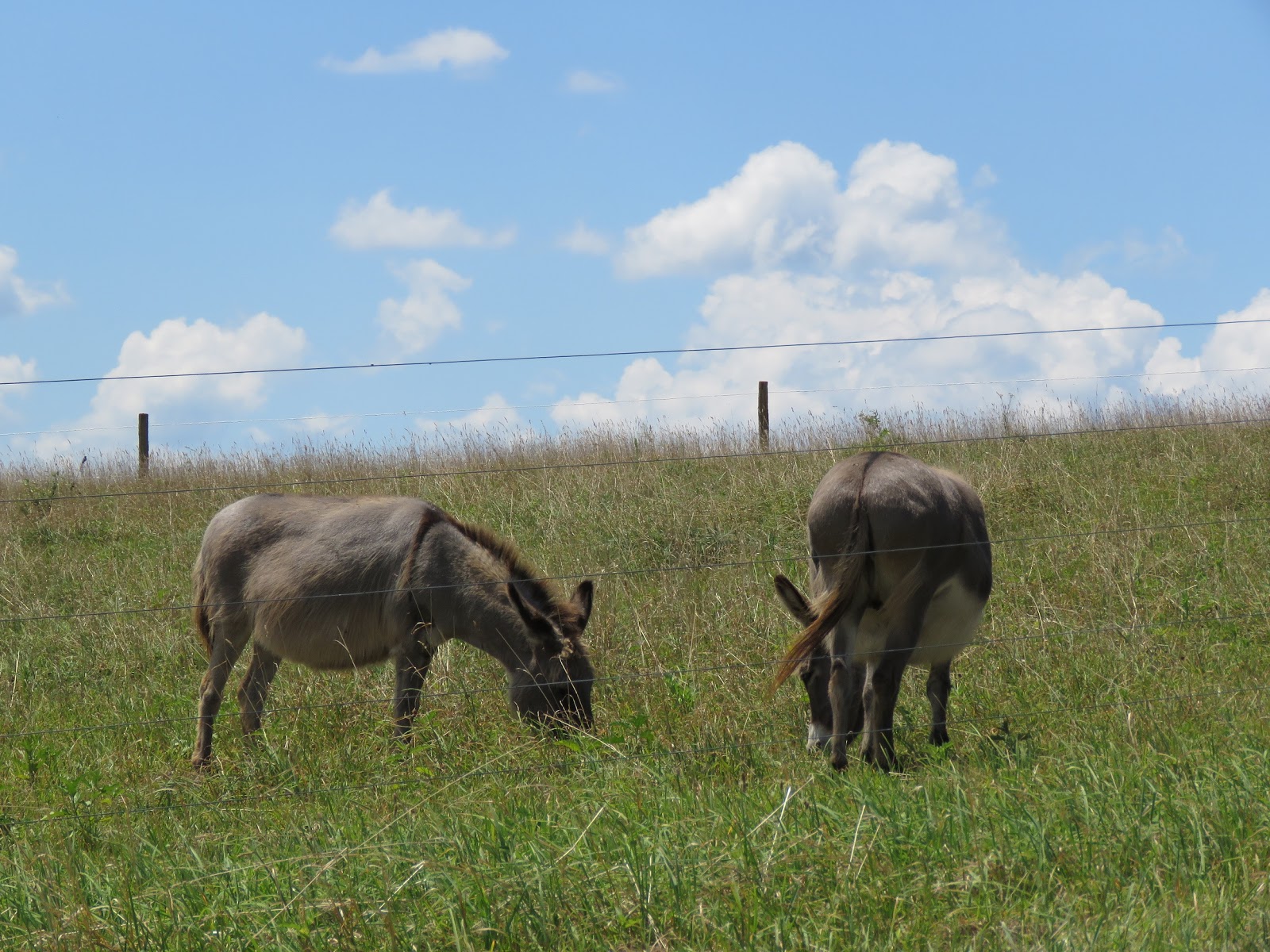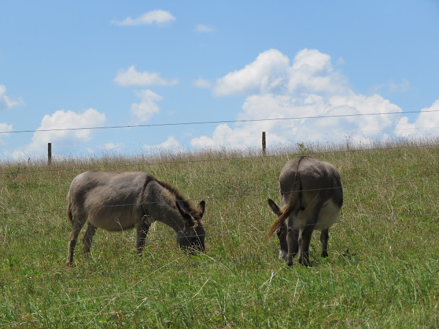 These are my critters for today's critter post. On the way home from our local bike trail we road past this farm with two donkeys and two horses. I had to stop and take some photos, I love donkeys.