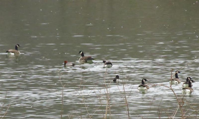 The Redhead ducks above are a diving duck, they have the red head, black breast, grayish sides, a bluish bill with a black tip and has yellow eyes..The Redhead photo above was taken at Loch Raven Resevoir in Baltimore County, Maryland.
