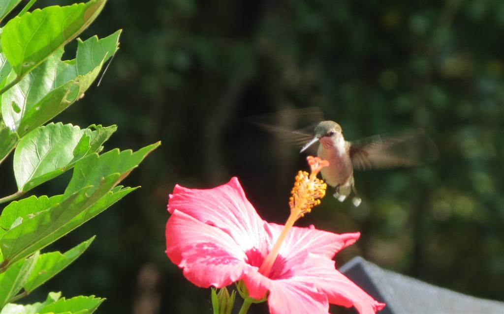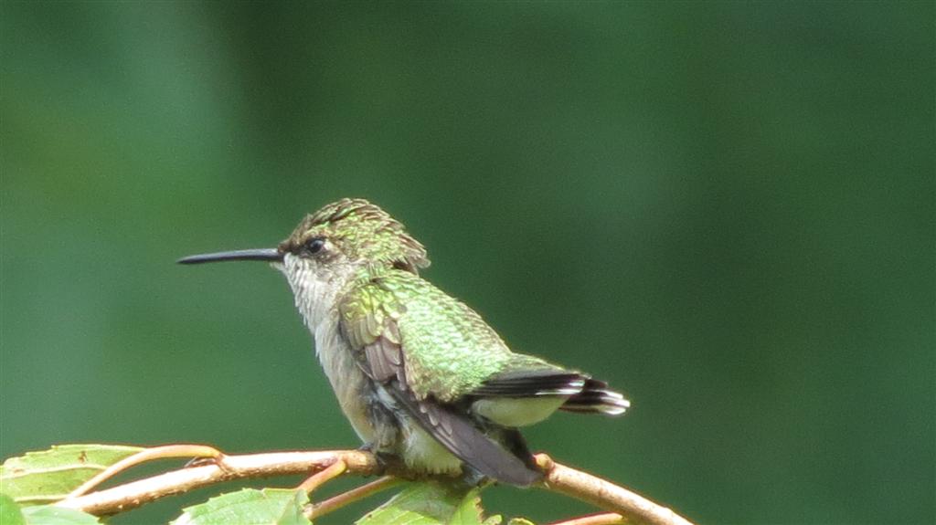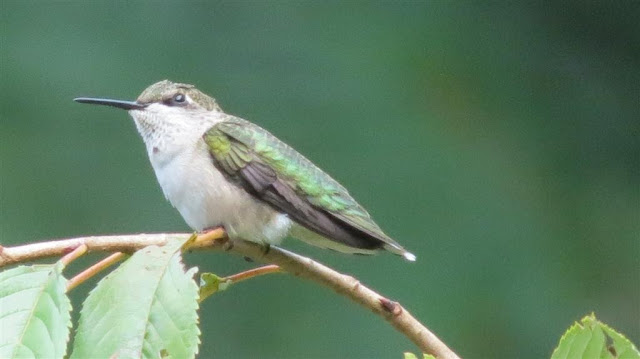 My cute Ruby-throated Hummingbird, he is on guard watching his feeders.