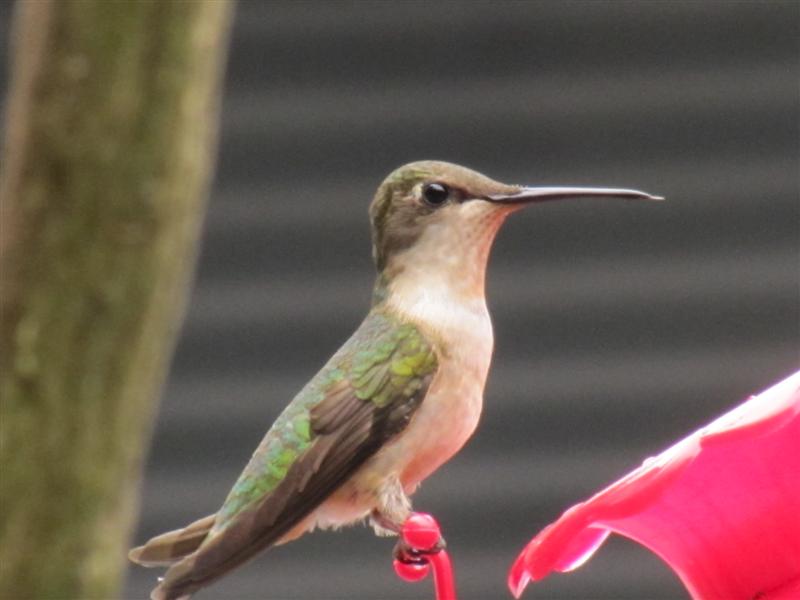 Below is the female Ruby Throated Hummingbird. The male shown in my mosaic has the pretty ruby red gorget.