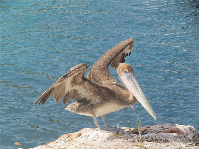 The Pelicans were also hanging around the aquarium, they must all know where to get the free and easy food. At the aquarium, I also saw Terns, more of the Bananaquits and a Green Heron.