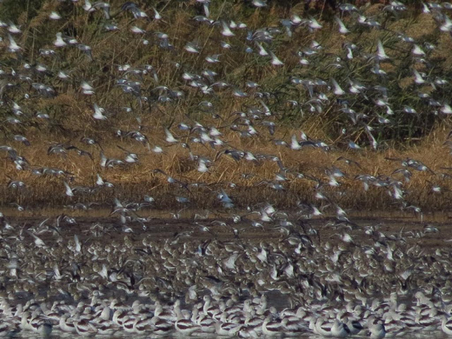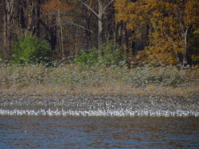 I believe the bird with the highest count seen at Bombay Hook were the Coots. Hubby and I were in disagreement over the count. I said there was close to a thousand Coots throughout the refuge and hubby had a lower count of 700-800. The other highest count birds were Dunlins and Sanderlings? The Coots were in such large groups, I was never able to fit a group on one photo. We also saw some Yellowlegs and maybe Dowitchers. I am happy the shorebirds are arriving.
