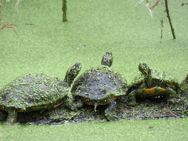 The turtles come out in the sunshine.