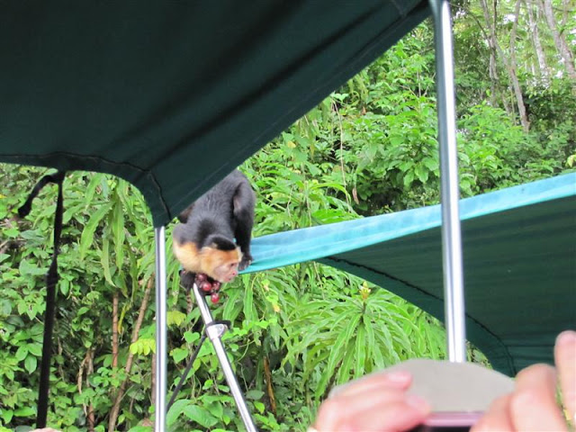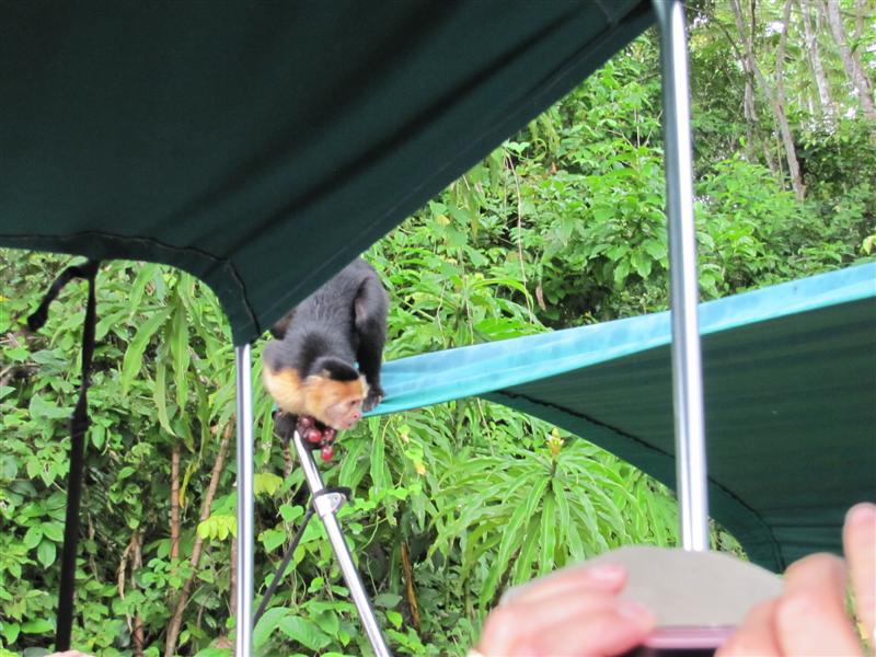 During our trip to Panama, our tour group took a boat ride out to Monkey Island. This tour reminded me of the boat rides we took on our Costa Rica vacation. Very cool! The guys driving the three boats were pretty experienced at finding the Capuchin monkeys. Plus, I think it helped they had some spare grapes on board.