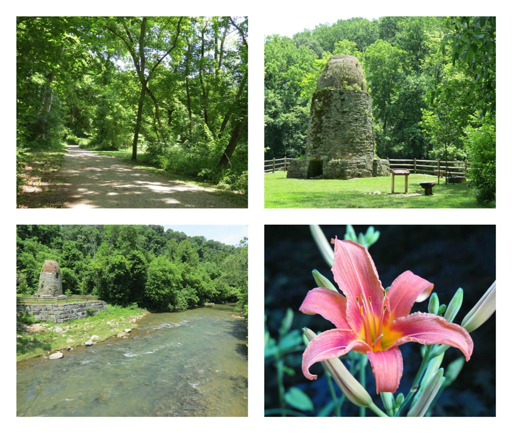 Above the is trail we hiked on at the park, the Deer Creek which empties into the Susquehanna River. I noticed some of the pretty wild tiger daylilies blooming along the creek, along the trail is an old flint furnace.