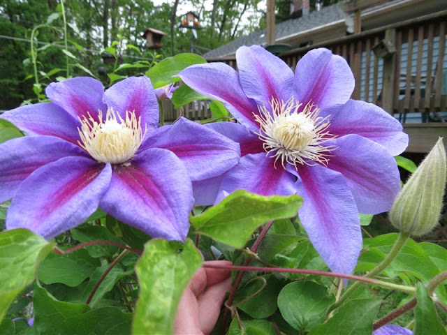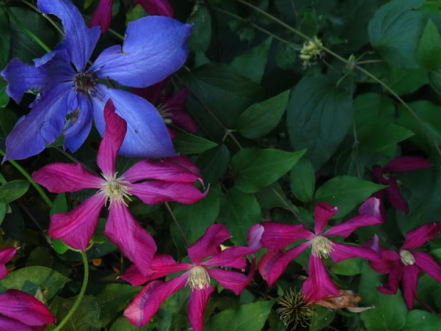 We have a lot of pretty Clematis blooms on our fence. There are around 300 species of Clematis. We have at least three different species growing in our yard.