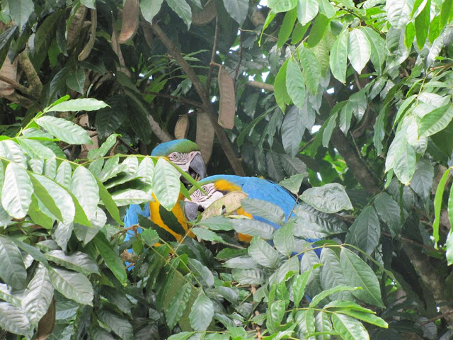 The Blue-gold Macaws were seen on the parking lot of the Swinging bridges. They were most likely escapees but still very cool to see the pair of them.