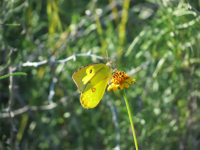 The native plants at the zoo attracted many different butterflies and moths. I believe this one is a Sulfur..Clouded Yellow.