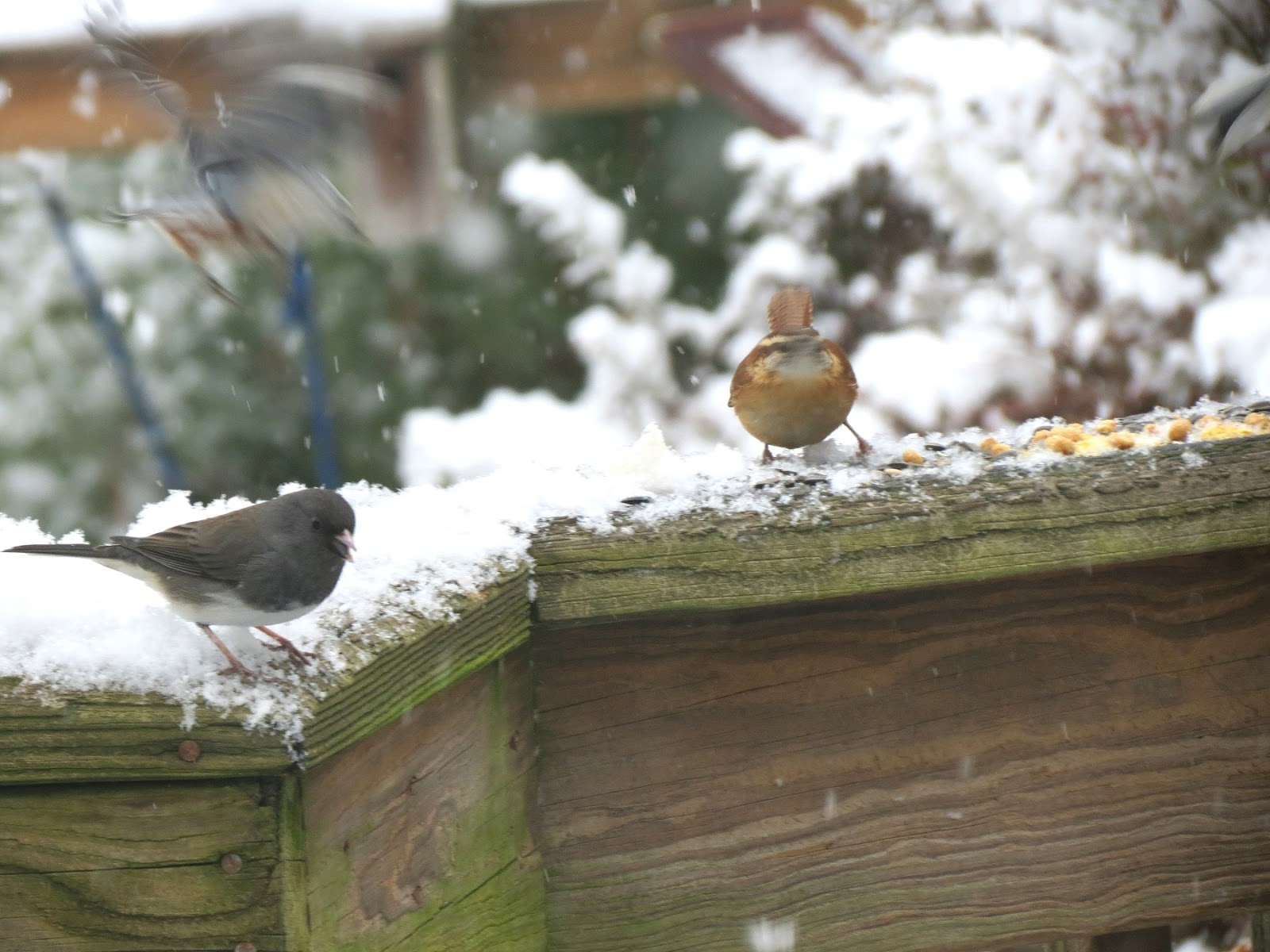 Can you find the Carolina Wren? Did you know leaving a pile of leaves on the ground can help the critters? Caterpillars, moths and butterflies can be overwintering under the leaves.