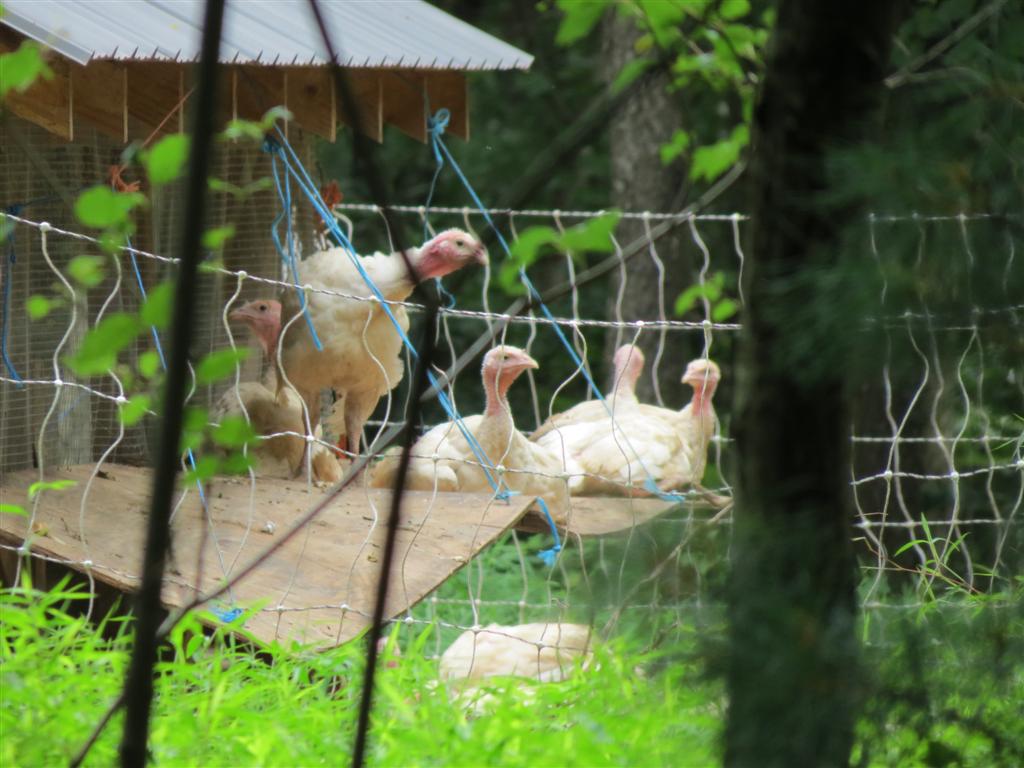 You can see some of the temporary fencing they have to keep the turkeys from running off and escaping into the woods.