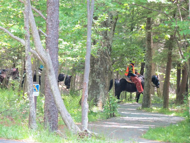 Above a Shenandoah Black bear, a view of the Shenandoah valley, wildflowers, deer, horses on the trail, cabbage white, Towheee, Blue-headed Vireo, fawn and momma deer.