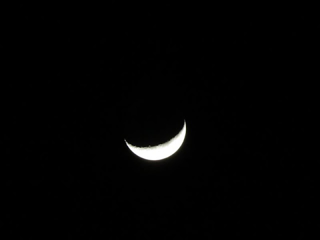 These shots of the crescent moon were taken on Feb. 26. I enjoyed looking at the moon when it was lined up with Venus and Jupiter. My son was able to show me where to locate various stars. It was a beautiful evening with a clear sky. I was able to focus on just the crescent moon.