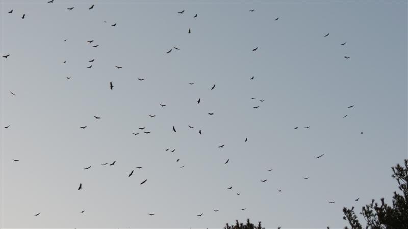 More of the Turkey and Black Vultures flying over my yard. It is like clockwork, they arrive back into the trees next to my house every evening.