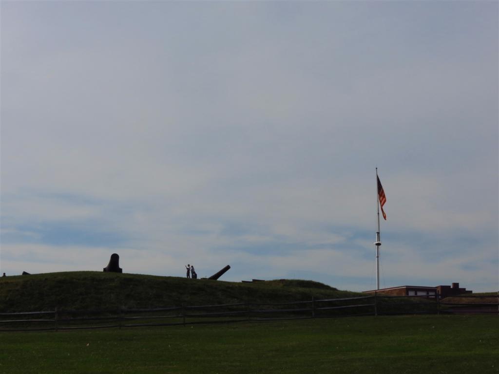 Looking up on the hill from the walkway we could see the large canons that were used during the War of 1812.