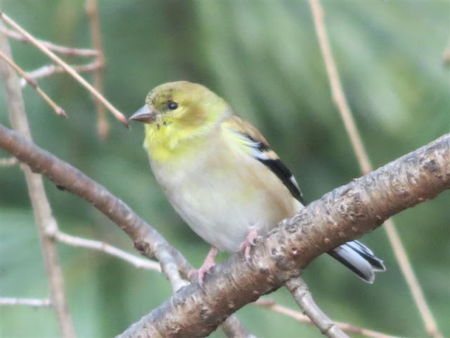 A Ruby-crowned Kinglet above and another open winged kinglet below. LOL, if you look real hard you can see the ruby crown on the kinglet in the top of the photo.